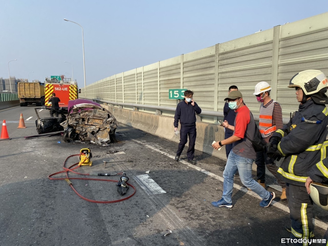據了解,駕駛座為一名19歲年輕媽媽,但其遺體因受燒相疊不易辨識,另外駕駛座正後方疑似為一名孩童,但車內及遺體均已呈現燒熔,增加辨識困難,而目前警消人員正積極搶救當中,至於詳細事故原因仍有待調查釐清。