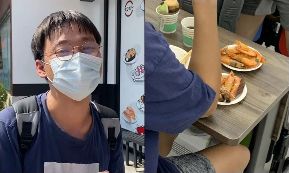 只見該篇貼文中,受害者貼出一張男性背影照,桌上放了2盤滿滿的蝦子,飲料和點心各一杯。受害同學文中則是相當無奈,「記得取飯要排隊,不要看到蝦子剩很多就插隊,後面排一堆人,等了10幾分鐘,你當後面的人都空氣嗎?」指控夾蝦男還沒等大家第一輪夾完就狂拿,甚至一夾就是快10隻,桌上似乎還堆了3、4盤,狂批這樣的行為超沒有公民素養。