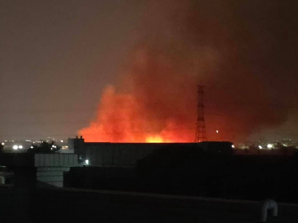 ▲台南深夜大火,墓地雜草全面燃燒照亮夜空。(圖/翻攝自湖內人大小事)