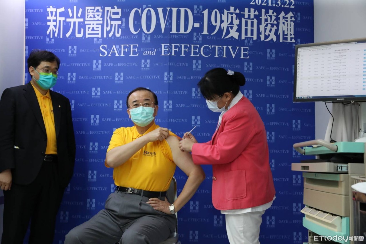 ▲新光醫院院長侯勝茂施打AZ疫苗。(圖/記者屠惠剛攝)