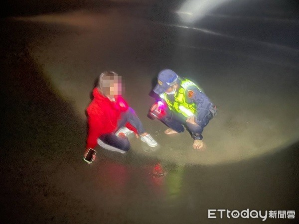 ▲紅衣女子因母喪恍神掉入海中,員警奮勇救起。(圖/大園警分局提供)