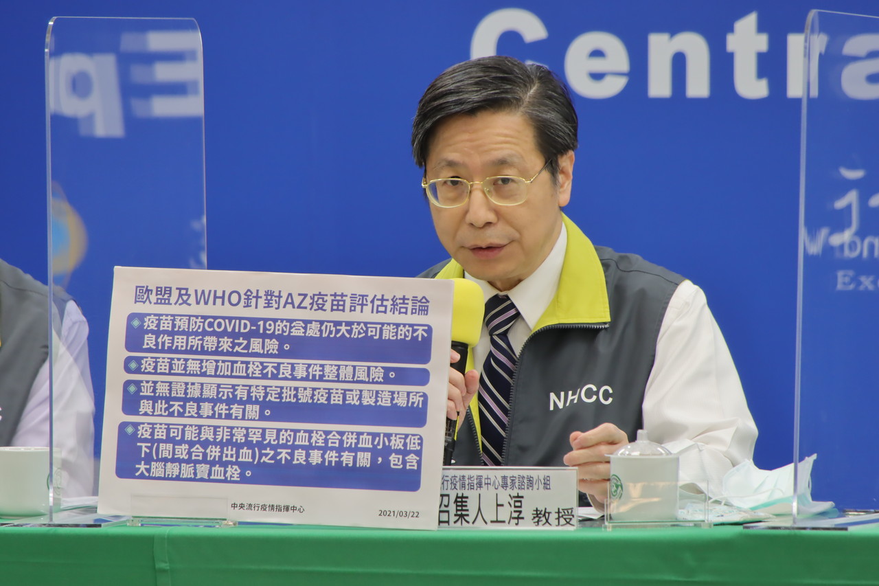 首波AZ疫苗共配送4.45萬劑到全國57家專責醫院,截至中午已有35家醫院院長完成接種。陳時中上午7時許也陪同行政院長蘇貞昌在台大醫院挽袖接種,他在下午記者會中表示,自己打完後覺得背痠痠的,更開玩笑表示,「不知道是不是心理作用」。