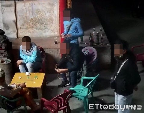 ▲台南市歸仁分局查獲外籍移工公然聚賭,警方緝獲8人,查獲賭具及賭金等證物一批。(圖/記者林悅翻攝,下同)