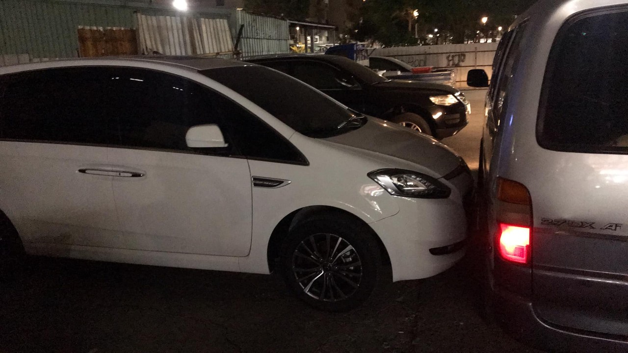 謝男附上一張他把車停在對方車前的照片,2車之間留不到一個拳頭的空隙,「收完攤要停車整個火大,原本真的打算給他停好停滿」。