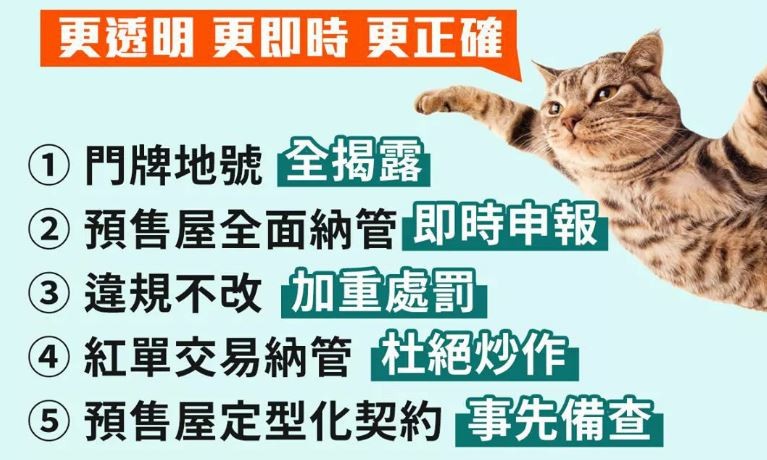 內政部表示,今年1月總統蔡英文公布的平均地權條例及不動產經紀業管理條例修正條文,已賦予主管機關查核權,施行後對於價格疑有不實個案,將可進一步向金融機構查調貸款契約及資金流向等有關文件,確保交易價格真實正確;另將預售屋交易資訊全面納管且即時申報,並將紅單交易納入管理且禁止轉售,違者最重可處100萬罰鍰。