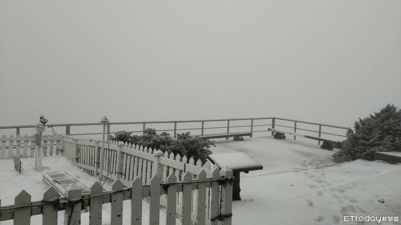 玉山再降3月雪,成了一片銀白夢幻世界!中央氣象局表示,玉山氣象站今天(24日)7時10分開始下冰珠、下雪,目前積雪1公分,降雪持續中。