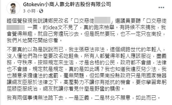 ▲小商人怒曝涉嫌性侵者姓名,但貼文遭到檢舉刪除(圖/翻攝「Gtokevin小商人靠北幹古股份有限公司」臉書)