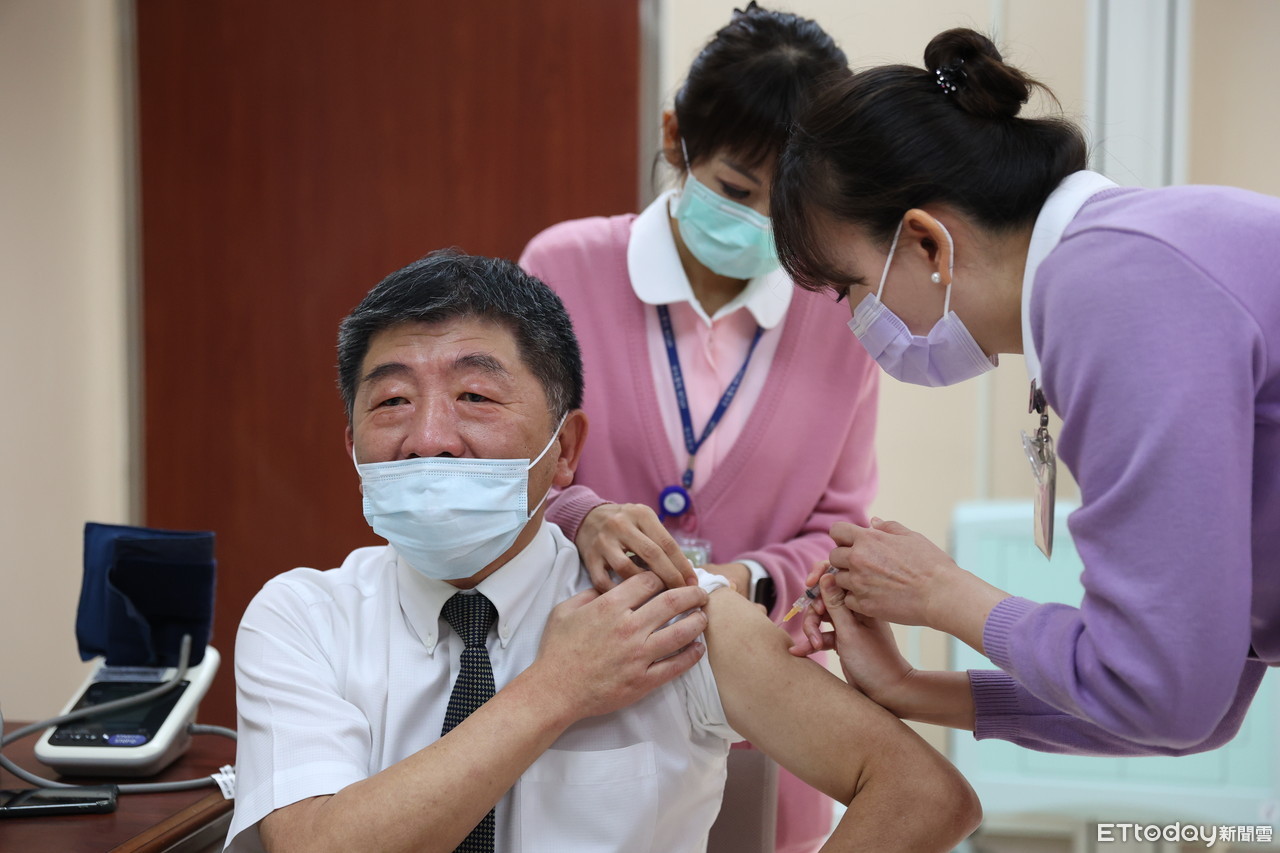 ▲衛福部部長陳時中施打AZ疫苗。(圖/指揮中心提供)