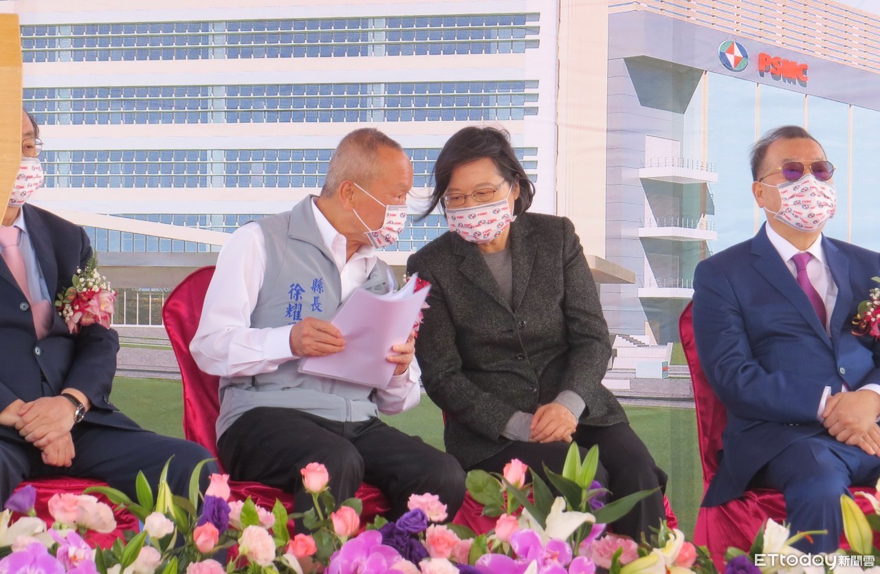 ►力積電25日上午舉行的銅科新廠動土開工典禮,會場冠蓋雲集,總統蔡英文由行政院副院長沈榮津、經濟部長王美花及竹科管理局長王永壯出席。(圖/記者黃孟珍翻攝)
