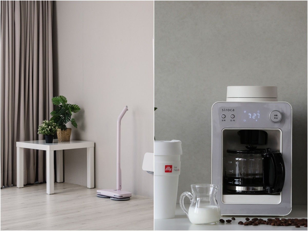 近期正式家電新品季,考量現代台灣人喜好清新自然的風格,加上即將迎來的夏天,許多美系白色家電備受矚目,包括正負零無限電動拖把,簡單輕盈的設計,掛在客廳或公共空間也不覺突兀,還有美型設計咖啡機,定時功能讓咖啡香取代鬧鐘,開啟一天好心情。