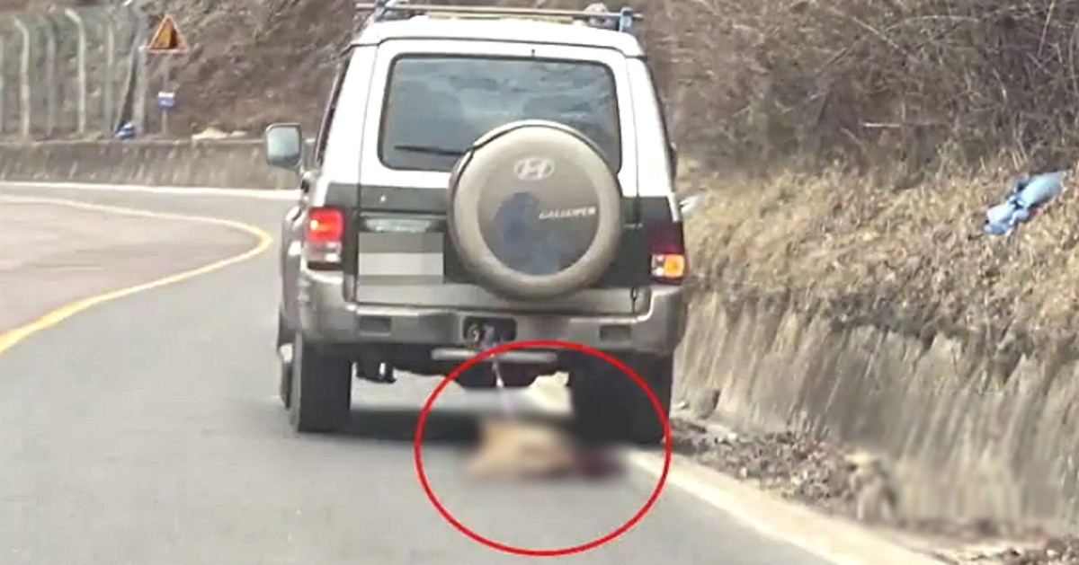 根據南韓網路媒體《Insight》報導,這起殘忍的事故發生於本月7日上午10時38分慶尚北道尚州市某條國道(相當於我國的省道)上,當用路人行駛至尚州市牟西面,意外見到這幕殘忍景象,一輛黑色的現代嘉樂豹(Galloper)越野車以時速60至80公里的速度狂奔,一隻流浪狗卻被用鐵鍊綁在車後,疑似為虐待動物。