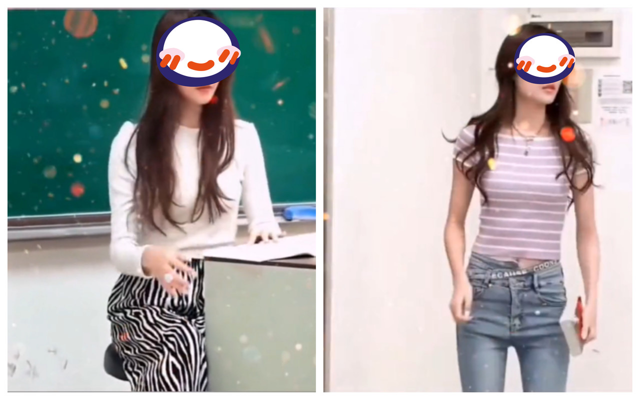 如果學校的老師很正,學生是不是會比較專心上課呢?近日抖音瘋傳一段影片,只見一位皮膚白皙、身材高挑、長髮飄逸的女老師,穿著相當合身的 T恤及貼身牛仔褲,微露一段小蠻腰,讓不少網友暴動高喊,「我要入學!」