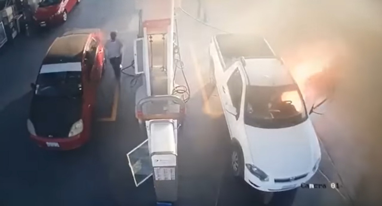 墨西哥一名男子在加油站一面加油,一面滑手機,無意間竟讓手機與油箱接觸,進而引發了一場可怕的火災。當局提醒,手機的小電荷是可以產生火花的,因此民眾不應在加油站內使用手機。