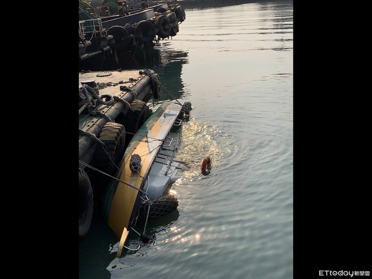 ▲高雄籍小船爍拉麗絲3號在台中港碼頭翻船。(圖/記者李忠憲翻攝)