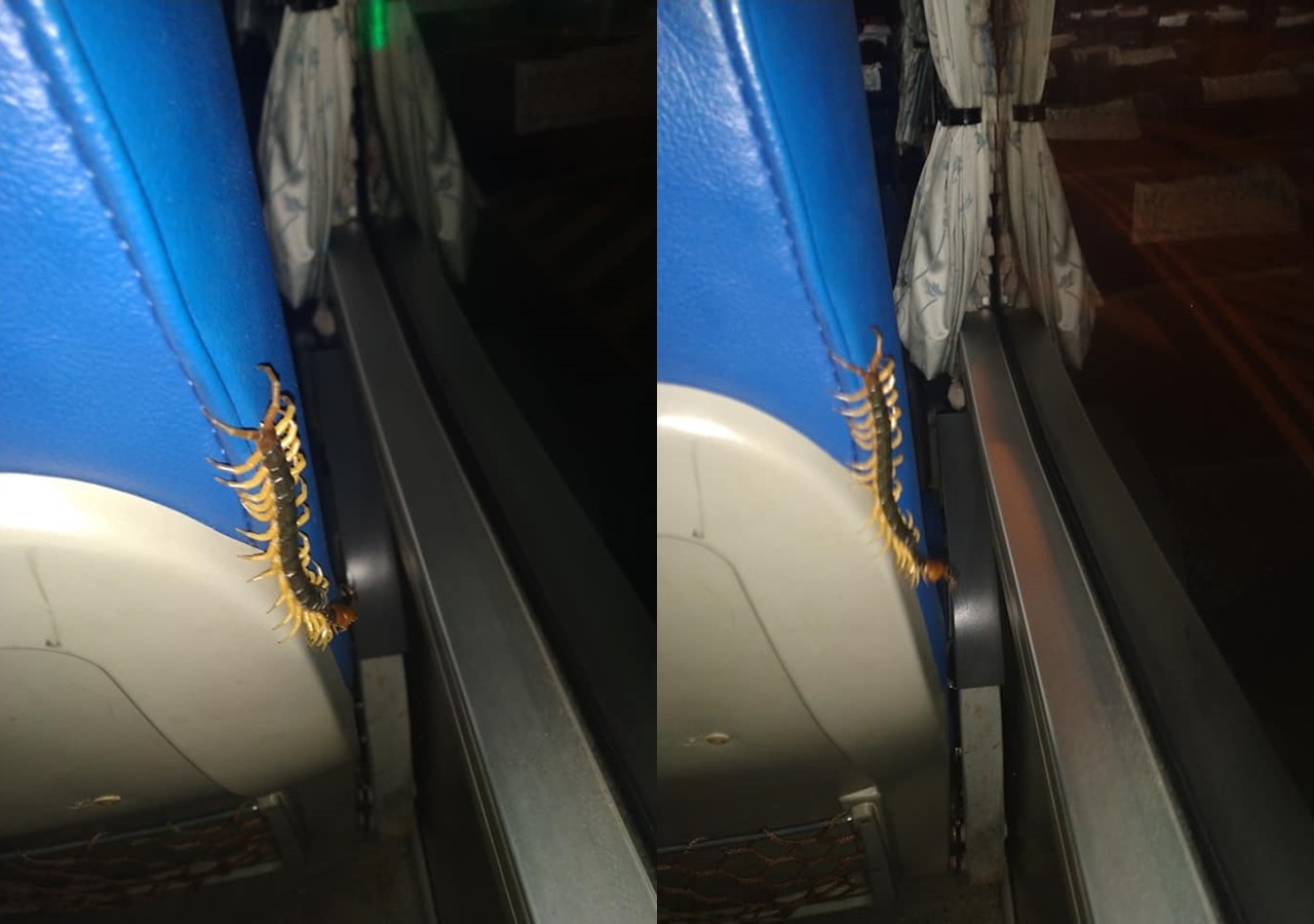 一名網友在臉書社團《爆廢1公社》表示,他日前坐上一班夜班的客運,過程中前方的椅子竟然竄出一隻巨大蜈蚣,頭尾長度至少有10公分長。照片分享後立刻引發網友熱烈討論,有人說「同車人員是不是有苗疆來的煉蠱師啊」。