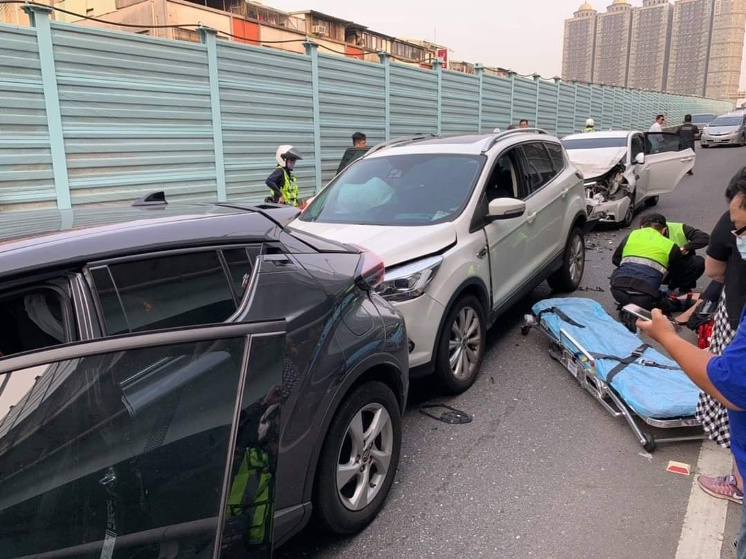 ▲台64線30日上午7點左右民生匝道口發生連環車禍。(圖/翻攝自臉書重機車友|各區路況、天氣回報中心)
