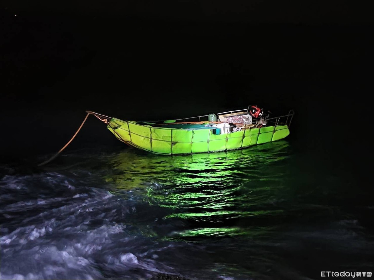 ▲男子偷渡使用的自製浮具。(圖/記者林名揚翻攝)