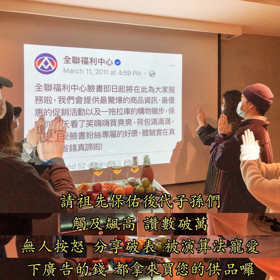 ▲全聯小編祭拜「貼文的祖先」。(圖/Facebook/聯福利中心)