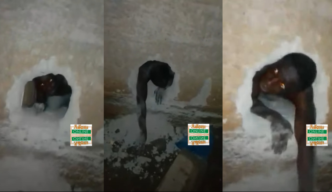 ▲迦納小偷阿賈索在盜竊後被卡在洞口無法動彈。(圖/翻攝自YouTube/Multitvworld)