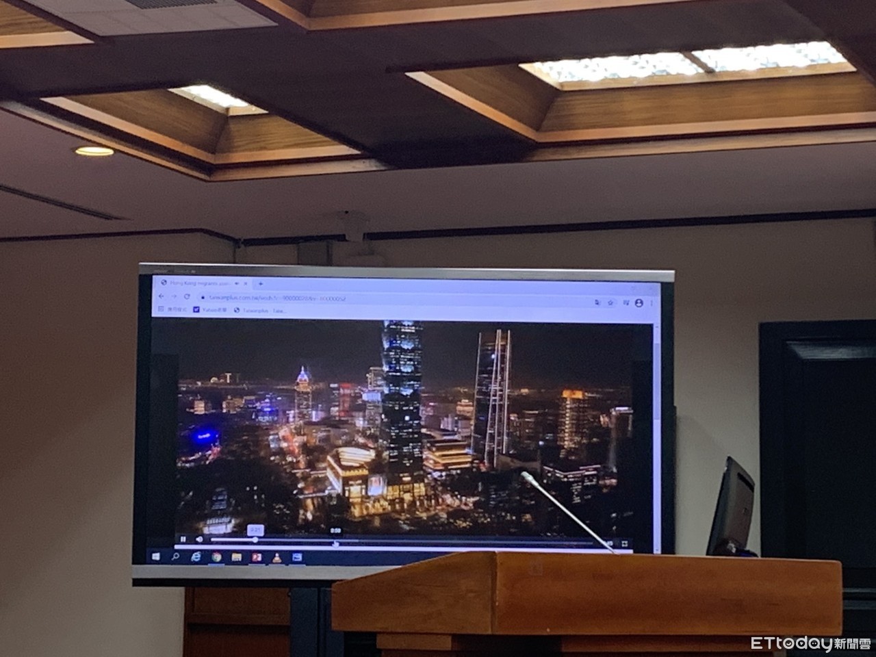 ▲中央社在立法院播放「國際影音平台前導計畫」的影片。(圖/記者林育綾翻攝)