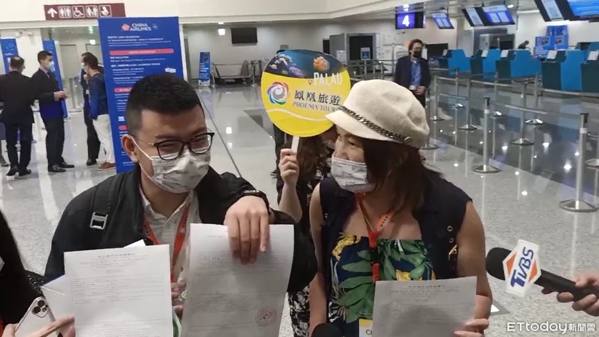 ▲帛琉旅遊泡泡首發團遊客開心秀陰性證明。(圖/記者宋良義攝)