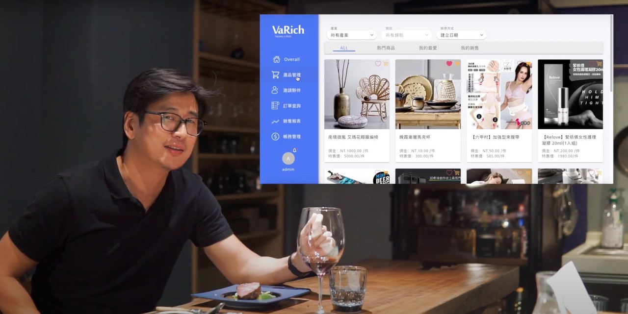 「VaRich一起瑞奇」這個全新打造的平台,訴求將一般素人、選貨達人的影響力化為實際且透明的分潤機制,不收月費年費,也不收一次性的建置費用,網紅透過分享賺取15%分潤,邀請朋友成為夥伴額外得到2%分潤,不但一人即可成團、分享銷售,更打造一個B2B2C的新平台經濟,消費者能找尋適合自己的商品,品牌商則擁有更多銷售機會,並在訂單完成後將支付25%佣金,經營模式透明公開。