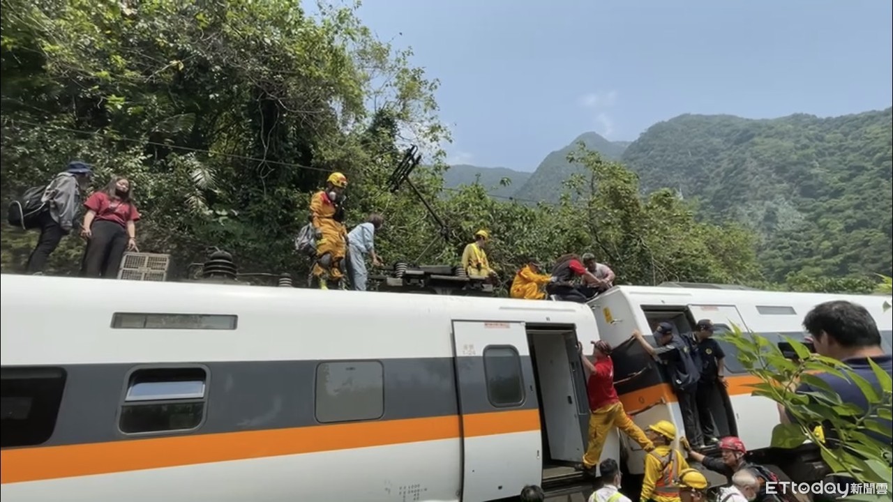 ▲現場救援畫面曝光!太魯閣受困旅客從車頂走出。(圖/記者黃彥傑翻攝)