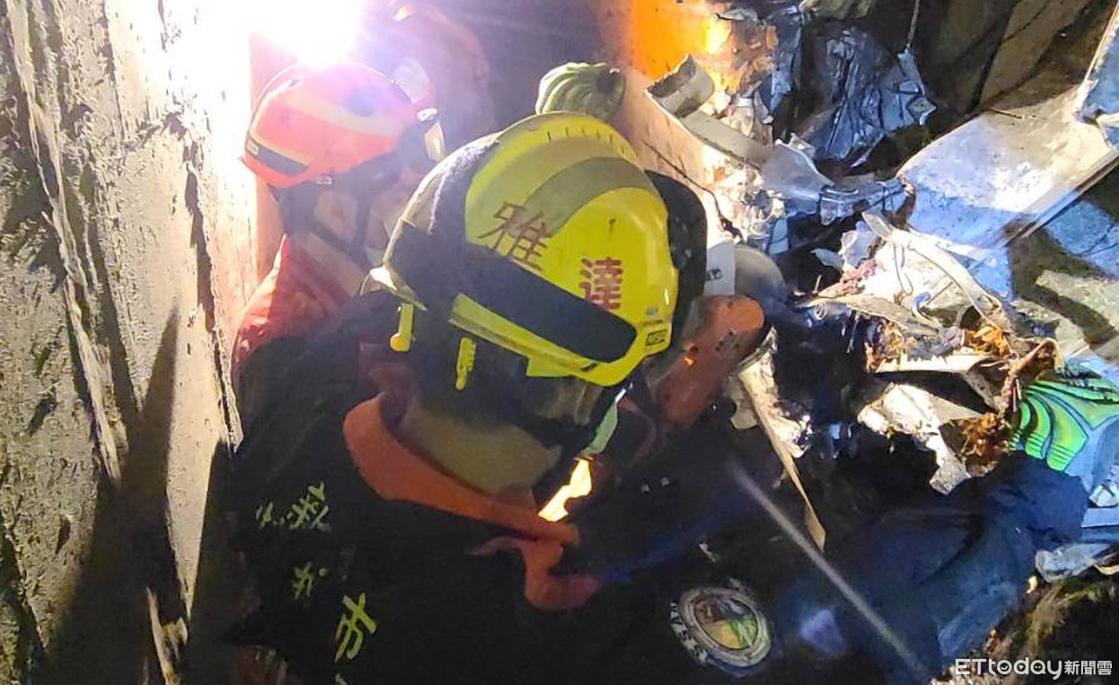 ▲新北消防員持續破壞車體搶救。(圖/記者陳雕文翻攝)