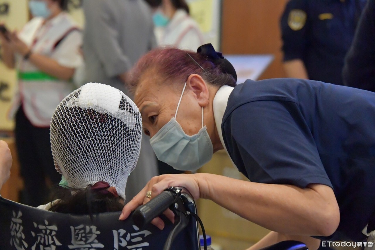 在醫院,不斷送進花蓮慈院的傷患,輕傷的經醫護初步診治等待時刻,都有志工或精舍師父陪伴或關懷,傷患在家人未抵達前的不安或驚恐之餘,總有志工膚慰的關懷,一聲聲的輕聲關懷,讓傷患感到安心,一次次的關心膚慰,讓傷患知道有人陪伴。