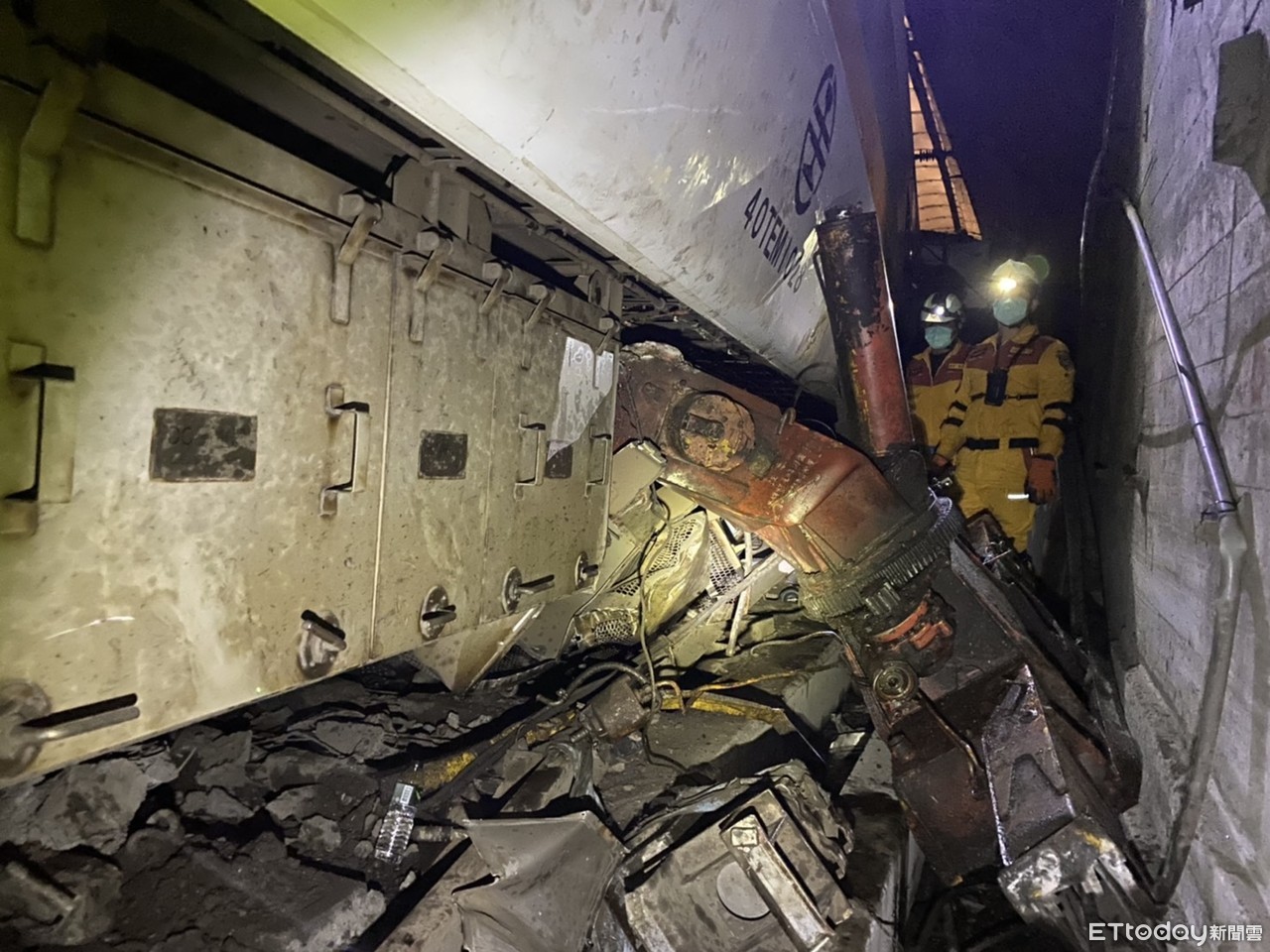 台鐵408次太魯閣號(樹林往台東) 2日上午9時28分傳出重大事故,列車行經清水隧道處時撞上闖入軌道的工程車,最新死亡已50人;基隆市消防局搜救隊挺進重災區、2日晚上6時再次進入第8節車箱往第5節車廂全面清查搜索。一名20多年搜救隊員表示,第一次看見撞得這麼慘,車體根本已成破銅爛鐵。