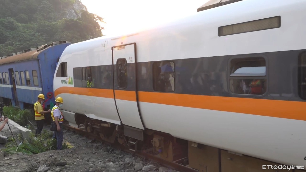 ▲太魯閣號408次出軌事故現場,事故列車正在進行移除作業。(圖/記者陳煥丞攝)