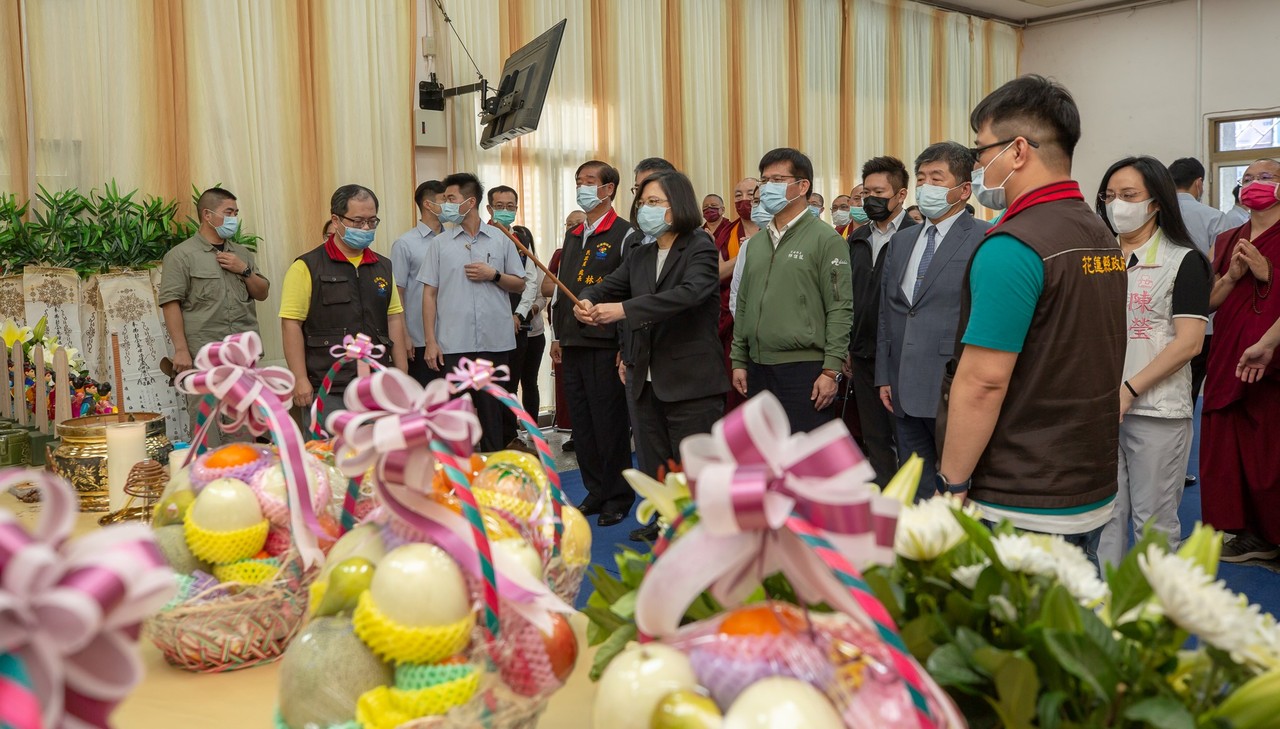 ▲蔡英文3日赴花蓮探視傷患、替醫護打氣,並向逝者上香致哀。(圖/翻攝自Facebook)