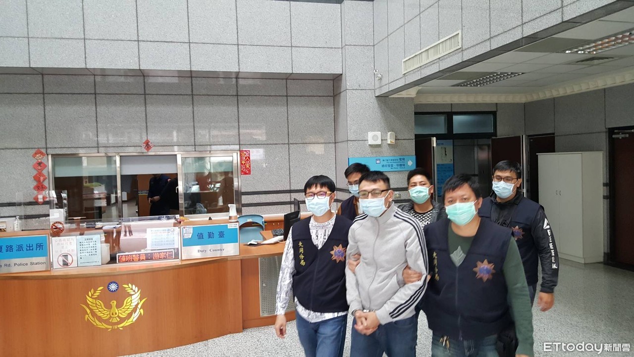 ▲大同警方4日清晨移送開槍殺人的廖姓男子(押送前方)及其共犯。(圖/記者張君豪翻攝)