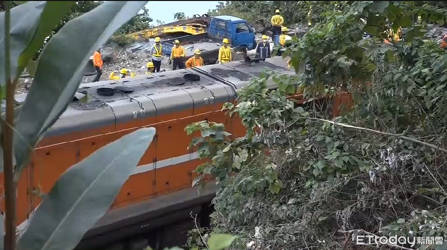 ▲太魯閣號第四節車廂拖出作業中。(圖/ETtoday記者攝)