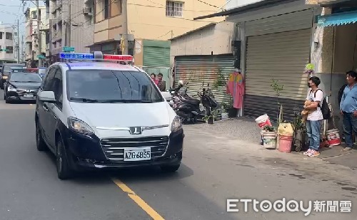 ▲台南市歸仁分局警車前導下,蔡女移靈回台南,下午2時左右先抵台南關廟住處。(圖/記者林悅翻攝,下同)
