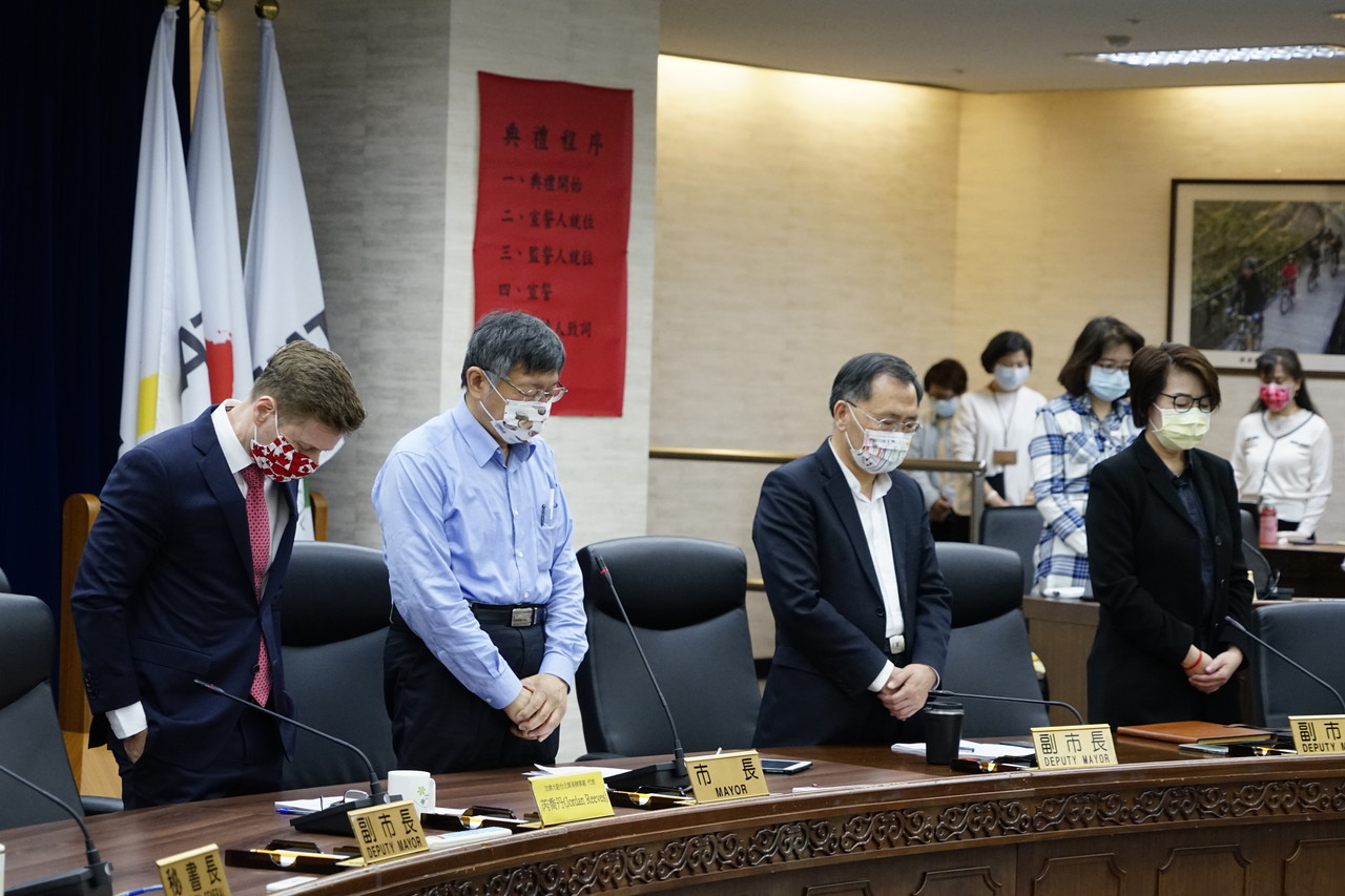 ▲台北市長柯文哲率北市府首長默哀1分鐘。(圖/台北市政府提供)