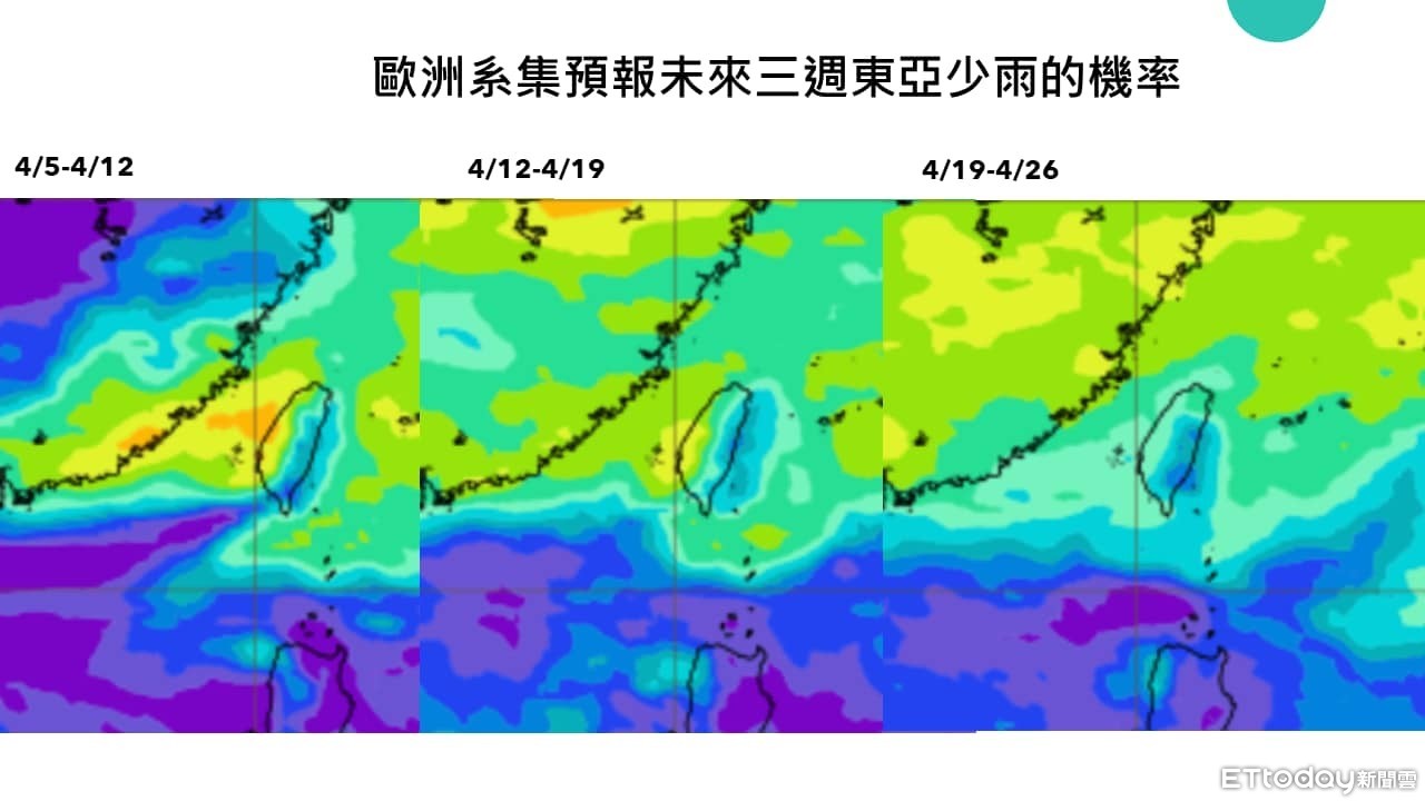 ▲根據歐洲的系集預報顯示,未來兩周,台灣降雨仍舊是機率低。(圖/翻攝賈新興臉書)
