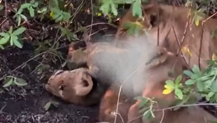 該則貼文的開頭便以全大寫字寫道,「敏感的觀眾請勿觀看!」因為影片中母獅正在和另一隻幼獅啃食著屍體,最初會以為是母子正在分食野鹿,但很快就能發現牠們在吃的,其實是自己的孩子和手足。
