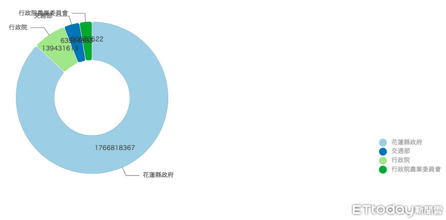 其中,東新營造標下花蓮縣政府17億6681萬8367元工程案、行政院1億3943萬1613元、交通部6392萬4883元、農委會5052萬522元。