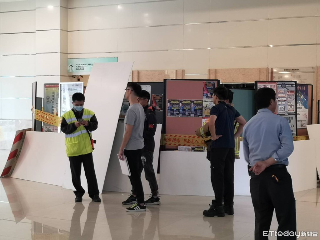 ▲世新大學去年發生電梯維修工人遭夾死後,校方緊急圍住意外現場。(資料照/記者黃彥傑攝)