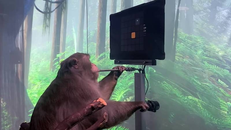 ▲植入Neuralink 腦部晶片的猴子用「腦波玩電動」。(圖/翻攝自YouTube/Neuralink)