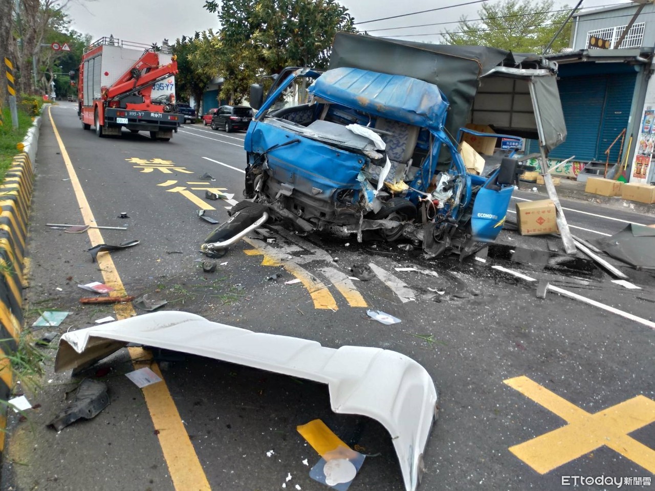 警消接獲通報後立即派遣人車到場救援,但發現小貨車車頭破裂,已經嚴重爛毀變形,地上也滿是鮮紅血跡,而駕駛吳男則是困在駕駛座動也不動,經救出後已經沒有呼吸心跳,送醫搶救後仍不治死亡。