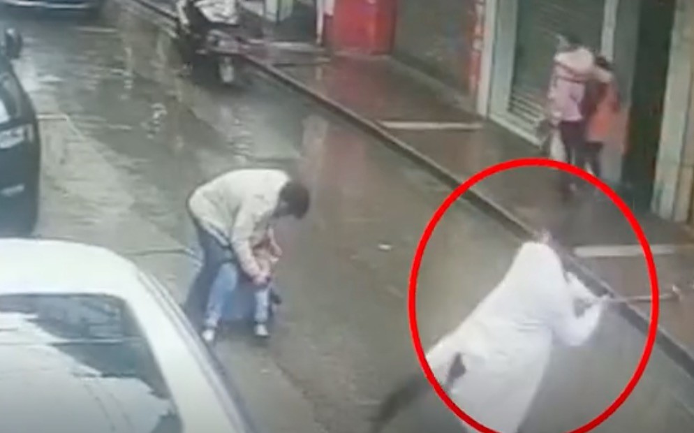 大陸貴州畢節一名男子在街頭持刀對一名女子施暴,剛好被經過的袁姓醫生看見,他趕緊拿起路邊鐵鍬反拍施暴男子的背部,壓制在地,差點打傷對方。看似熱心行為,不少網友替醫生擔心,之前曾有「見義勇為被刑拘」事情發生,擔心他被反告傷害。