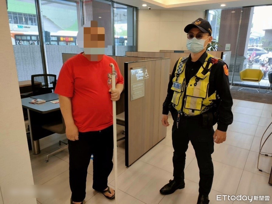 ▲視障男到銀行提領500萬現金,警方到場關心。(圖/民眾提供)