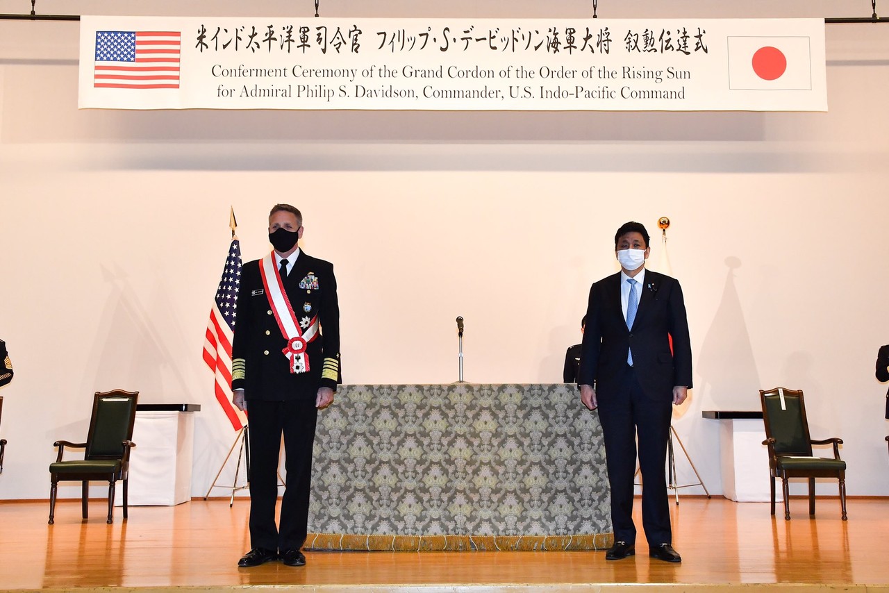 日本產經新聞報導,岸信夫與戴維森(Philip Davidson)今天在防衛省舉行會談,兩人針對中國動向、東海及南海局勢交換意見,確認了維持台灣海峽和平與安定的重要性。兩人都認為,為了實現「自由且開放的印度太平洋」,美日有必要持續合作。