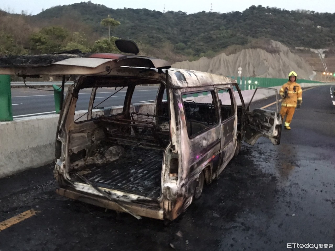 國道3號南下378.2公里高雄中寮隧道前,下午5時50分左右發生火燒車事件,目前車輛起火原因待查,車上1名駕駛與4名乘客均多處燒燙傷,緊急送往高雄義大醫院急救,駕駛人因身上多處燒燙傷,無法吹測酒精濃度,將由醫院實施抽血檢測。