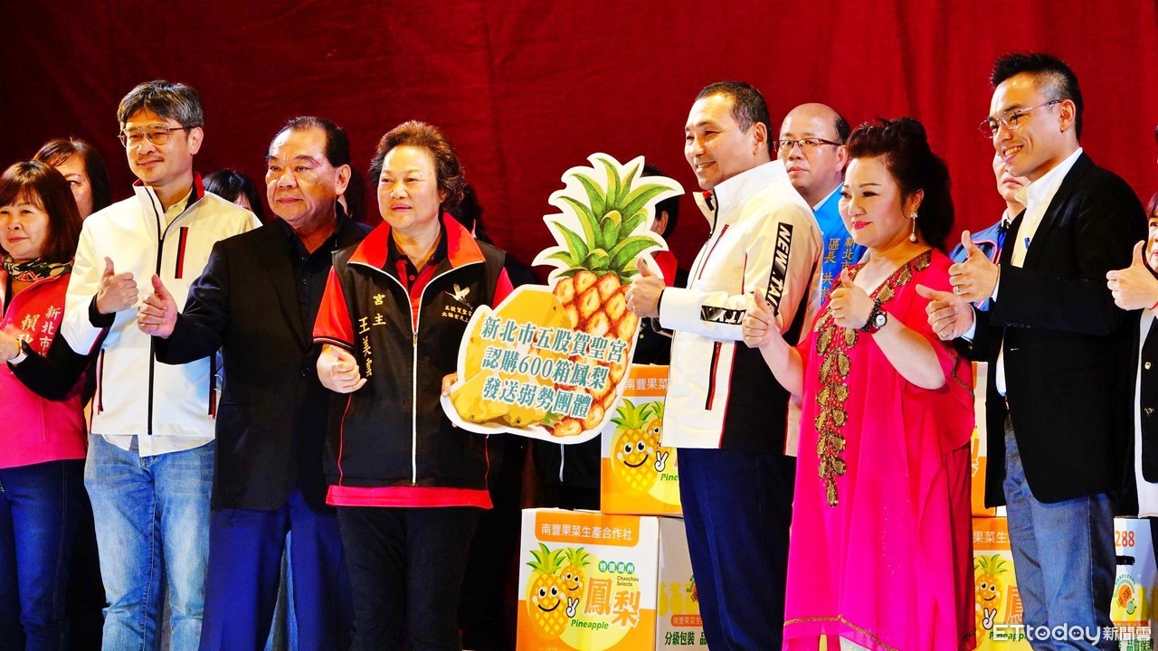 ▲新北五股賀聖宮建廟五周年,公益認購600箱鳳梨挺農友。(圖/新北市農業局提供,下同)