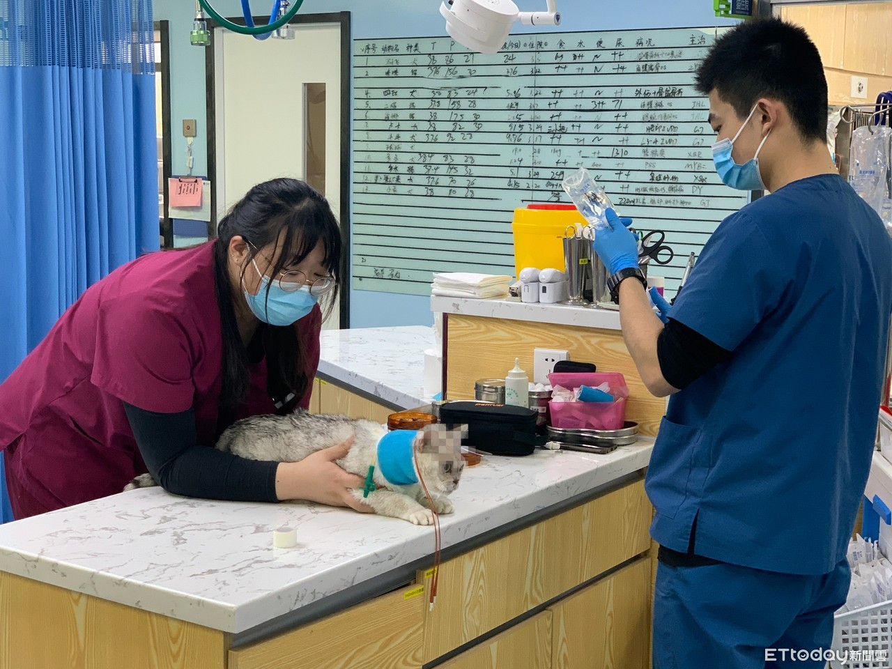 ▲北京芭比堂寵物醫院內,寵物醫生和護士正在替剛動完手術的貓進行檢查。(圖/記者陳政錄攝)