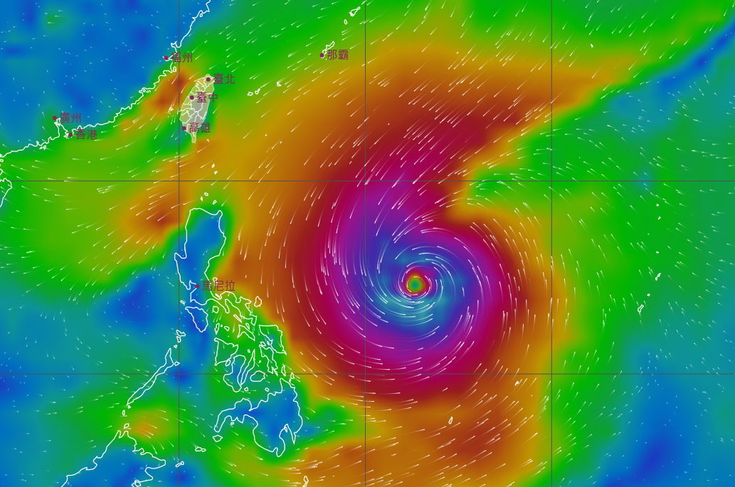▼氣象局「風場預報顯示圖」最新模擬下周一熱帶系統動態。(圖/氣象局)
