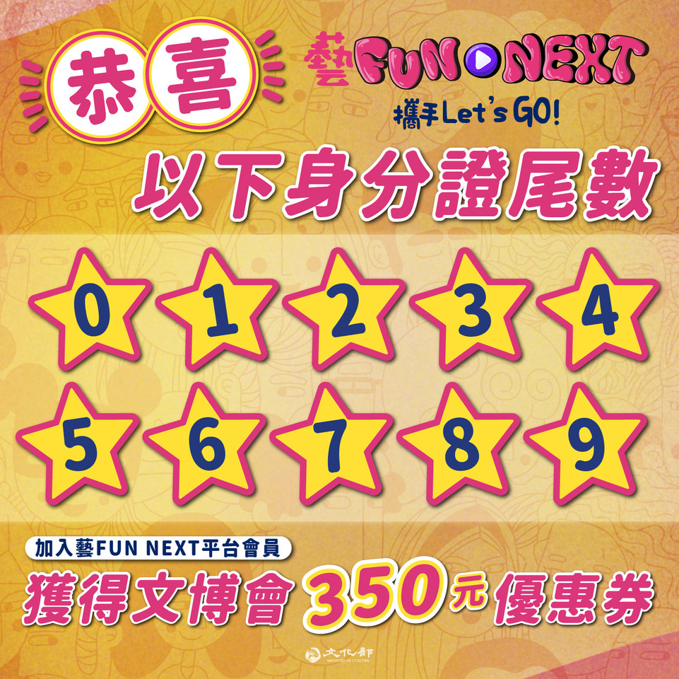 文化部呼籲,歡迎尚未加入「藝FUN NEXT」的民眾,趕快加入獲得專屬優惠及豐富藝文資訊,活動詳情可至文化部及文博會官網查詢;想要加入「藝FUN NEXT」文博會店家優惠,或是後續加入店家地圖及提供優惠的廠商,都可洽「藝FUN NEXT」客服。